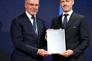 体育资讯4月3日讯 今天在贝尔格莱德举行的欧足联大会上,拜仁董事会成员鲁梅尼格被授予欧足联终身荣誉会员称号。这是仅次于荣誉主席的欧足联第二高殊荣。对此,鲁梅尼格感言欧洲足球塑造了他的一生,相信欧足联在费切林领导下前途光明。